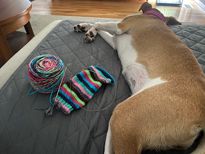 And I've added some more stripes to my sock WIP and am almost to the heel (unfortunately they're only a small fraction of a Ruthie long):